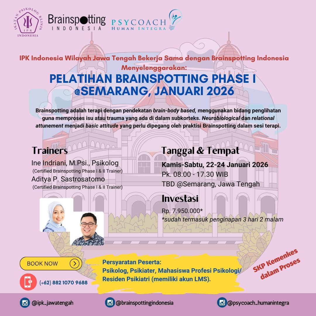 Brainspotting Phase 1 | In-person @Semarang | Thursday-Saturday, January 22-24, 2026 | Ine Indriani, M. Psi, Psikolog | Bahasa | ||